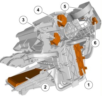 - (7) Damper motor module (DMM), air distribution left-hand side