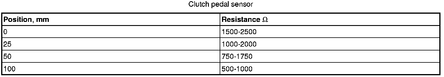 The table shows which values apply when taking readings from the piston rod for the clutch pedal position sensor!