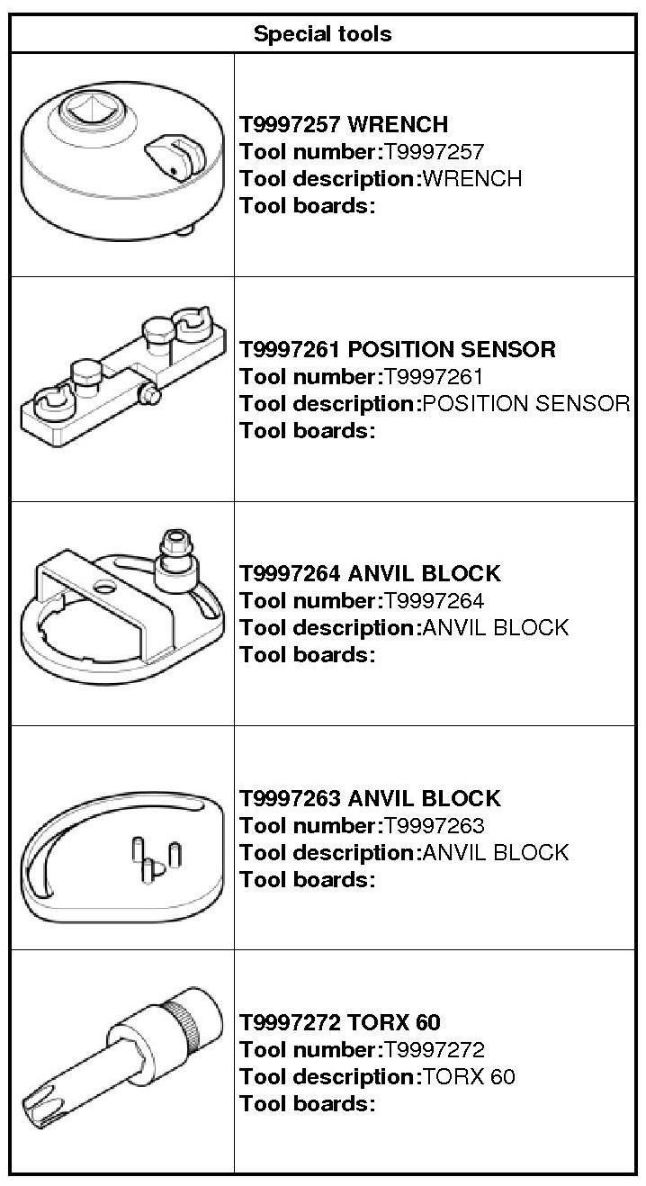 - Center screw, intake camshaft. Refer to Specifications, B6324S Tightening Torque