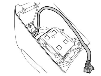 - Route the cable harness in from the DVD unit through the drilled hole and down on the right-hand side of the tunnel console.