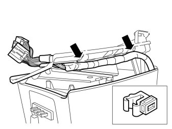 - Secure the 2 clips of the cable harness on the plastic flanges.