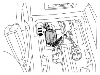 - Connect the 4 pin black connector from the cable harness (B) to the one disconnected from the AUX socket.