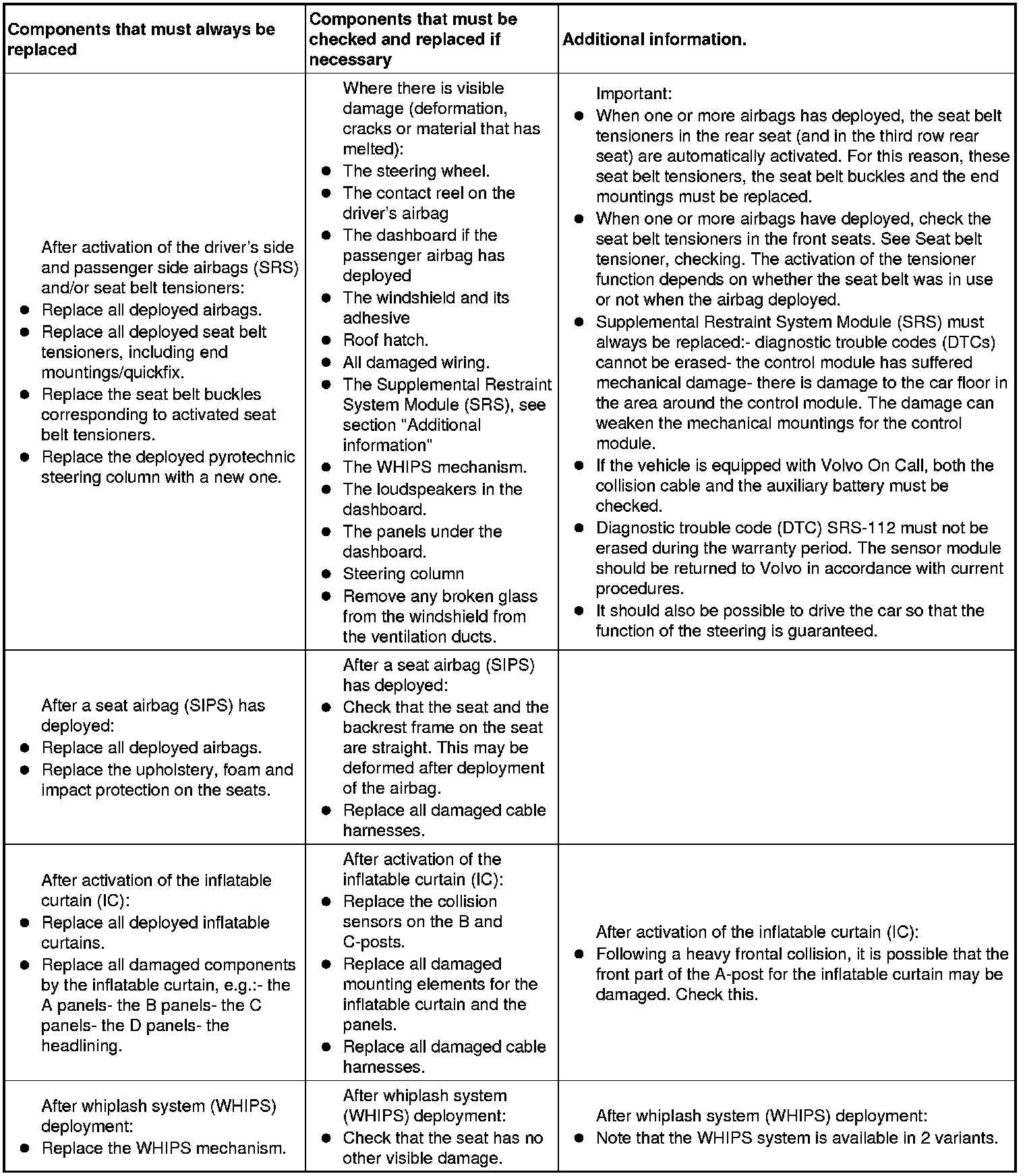 - Components that must be checked and replaced if necessary