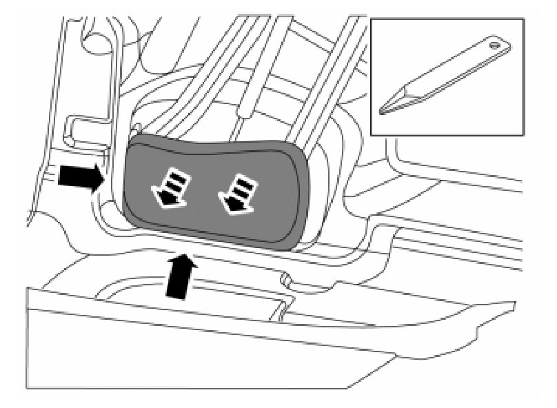 - Remove the load divider lock by using a weatherstrip tool to pry between the carpet and lock.