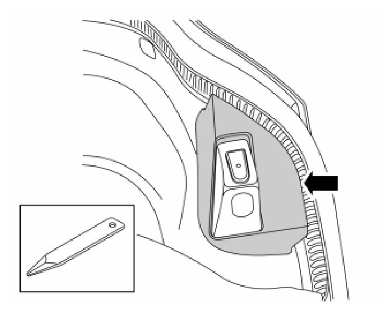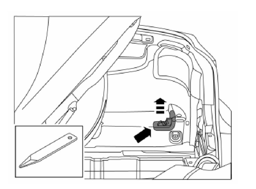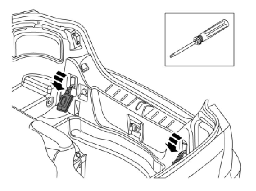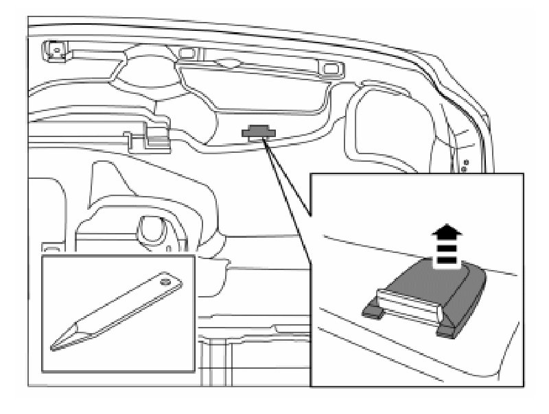 - Remove the boot lid's emergency opening handle by pressing out the pin at the eye and then unhooking the wire.