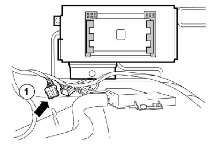 - Locate the 4-pin green connector that is taped to the parking assistance cable harness. Connect this to the adapter wiring.