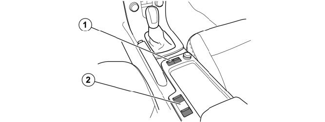 If the vehicle is not equipped with "blind spot" warning (BLIS) or parking assistance system (PAS), there is no switch, tunnel console rear (2).