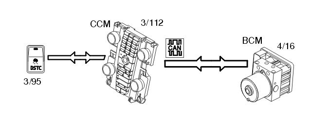 During activation and deactivation, the climate control module (CCM) transmits a signal indicating the selected status for STC/DSTC to the brake control module (4/16) via the controller area network (CAN).