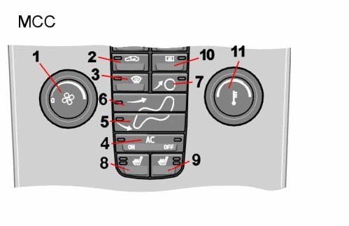 - Set the recirculation button (3) to "On". Cars with air quality sensor (AQS) to "man"