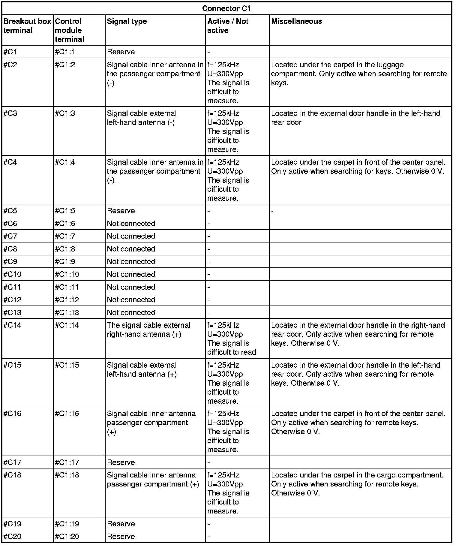All values given below are between the terminals stated in column 1 and terminal #B4 (power ground). This applies unless otherwise indicated in brackets.