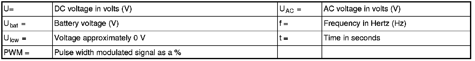 All the values given below are between the terminals stated in column 1 and terminal #C2:4 in column 2 (power ground).