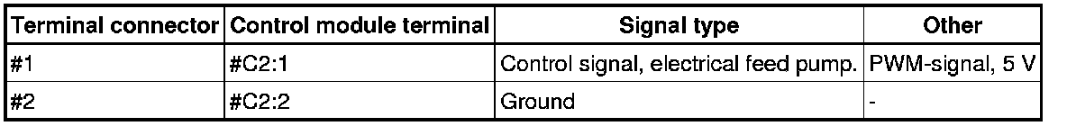 Measure the resistance between feed pump's terminal pin #1 and #2. The value should be approximately 3 - 5 ohms at +20 °C.