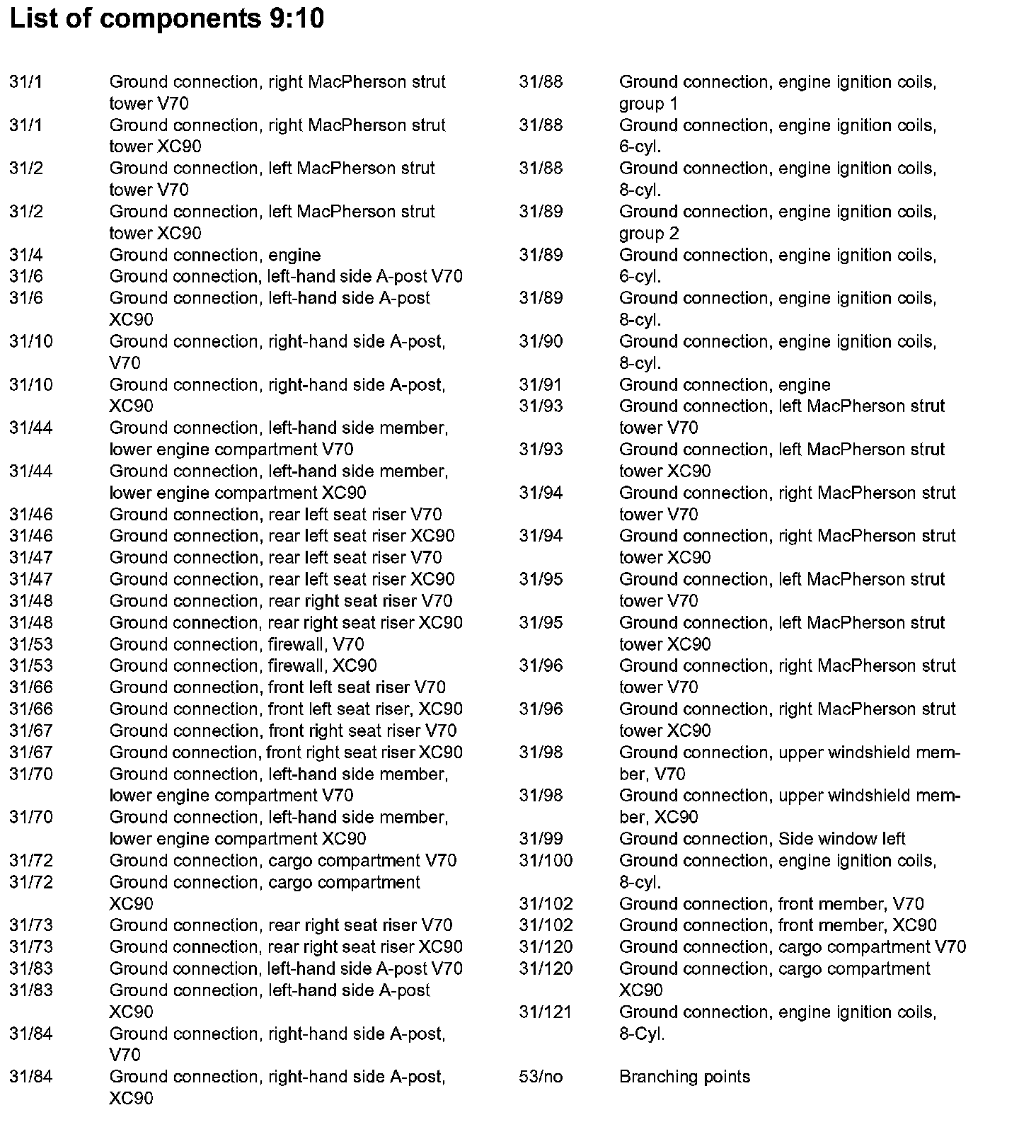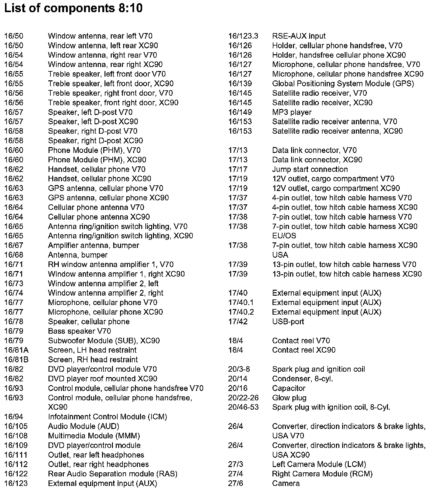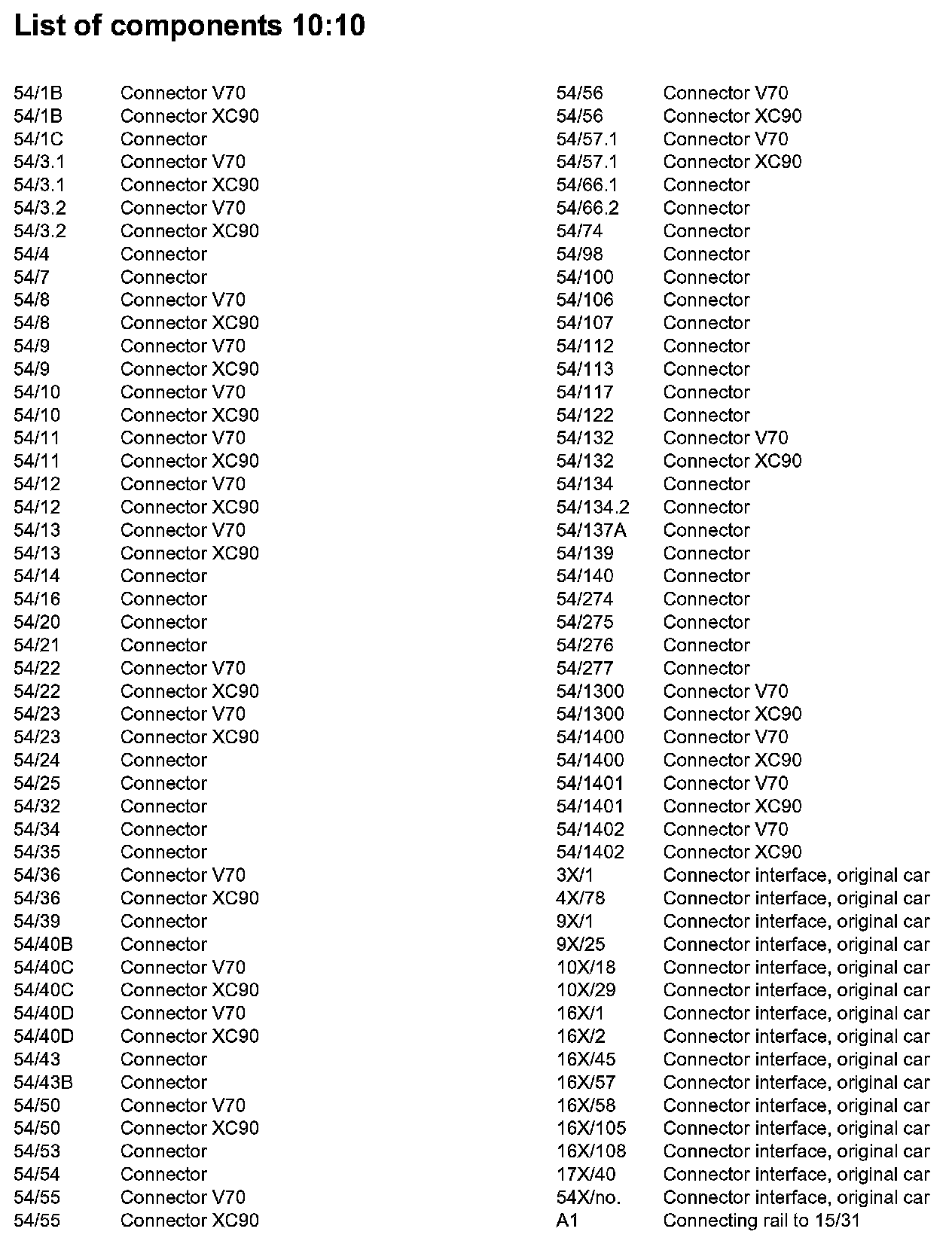 List of Components By Component Number