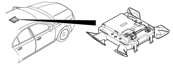 The mass movement sensor module (MMS) detects movements inside the passenger compartment using high frequency radio waves of 2.45 GHz. The Doppler effect principle is used to determine whether the frequency of the received microwave is different from the transmitted microwave. If the frequency has changed, this is interpreted as a movement in the vehicle. If a movement is detected, a trigger signal is transmitted to the central electronic module (CEM) which activates the alarm.