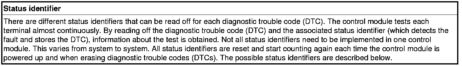 Status identifier, description
