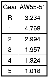 The value indicates the transmission gear ratio. The transmission control module (TCM) uses the input and output speeds to calculate the gear ratio. For the correct gear ratio, see the table below:
