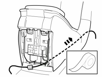 - Tape the connector and a piece of the cable harness to the wire spiral and carefully pull it through. Help to feed it out through the hole for the gear shift gaiter and the hole where the storage compartment was located. If necessary lift up the rear edge of the tunnel console to facilitate routing.