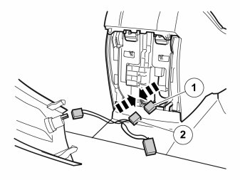 - Connect the 12V outlet's black male connector (1) to the equivalent white female connector (2) on the routed adapter cable.
