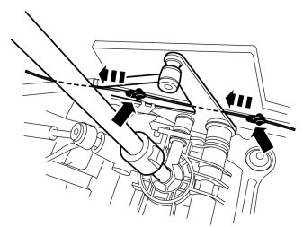 - Pull all surplus cable up to the front edge of the tunnel console. The cable must be routed on the right-hand side of the control arms to the gear shift.