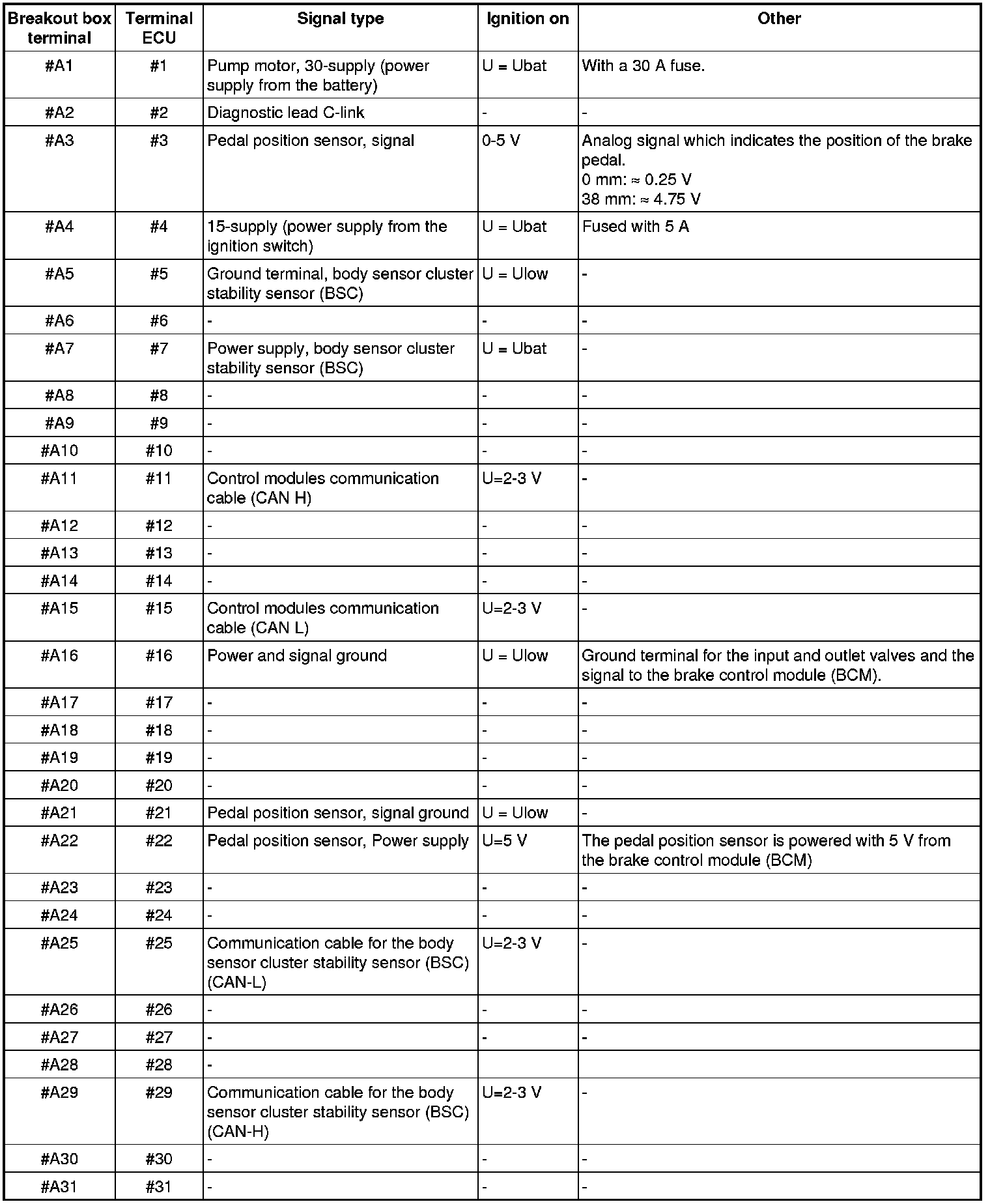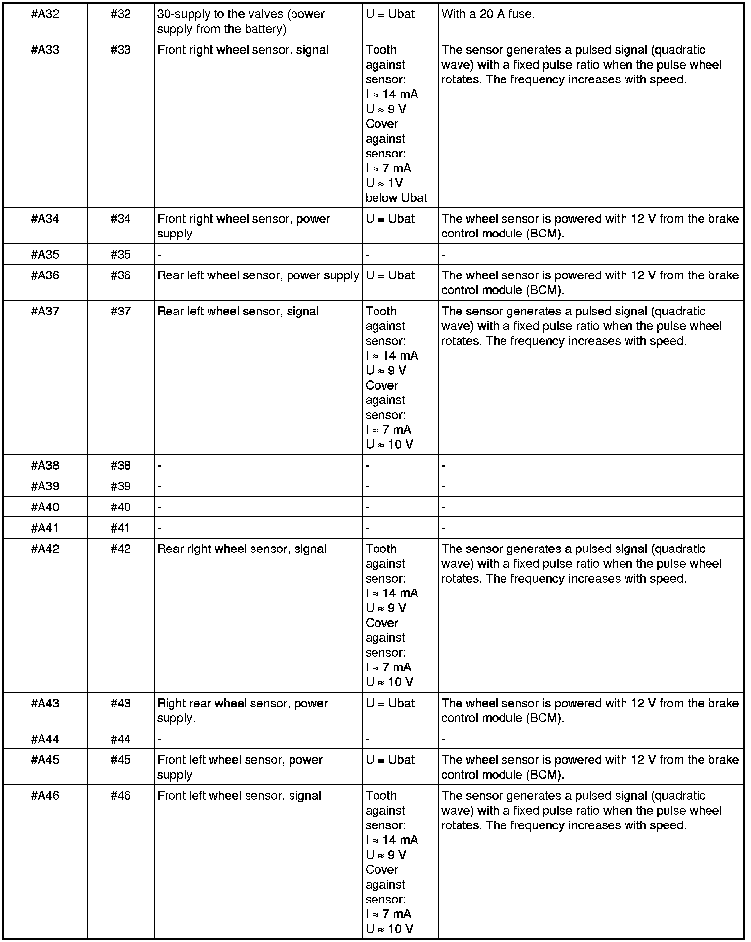 Signal description with DSTCAll values given are between the relevant terminal in column 1 and terminal #A16 or #A47 (ground), unless otherwise indicated in brackets.