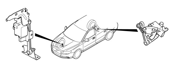 One position sensor is located next to the rear axle and is connected to the left rear control arm via a link system. The other position sensor is located next to the right front axle and is connected to the right front control arm via a link system.