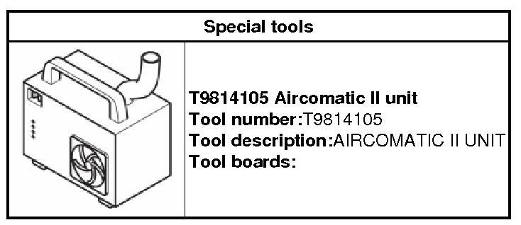 Place 981 4105 Aircomatic II unit 981 4105 Aircomatic II Unit on the passenger floor (left-hand drive) or the driver's floor (right-hand drive), place the pipe in the forward direction.