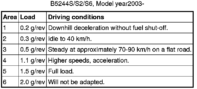Note! Note that the air conditioning (A/C) compressor increases the load by approximately 0.05 g per rpm. The use of the A/C compressor often results in a change of adaptation area.