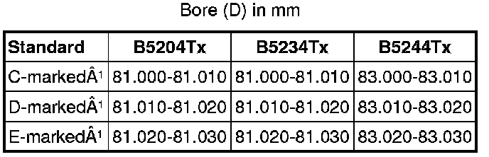 The bore classification is stamped on top of the engine block. For example: 1CCDDE is read as cyl 1=C, cyl 2=C, cyl 3=D, cyl 4=D, cyl 5=E.