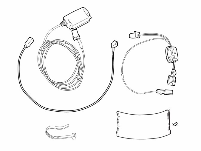 - Take the remaining cable harness with the three connectors from the kit and connect the two green connectors to the routed and existing cable harness.
