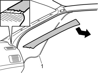 - Pull of the weatherstrip (1) for the door at the A-pillar.