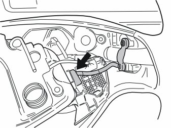 - Remove the five screws in the loudspeaker. Pull the loudspeaker up slightly from the dashboard and disconnect the connector.
