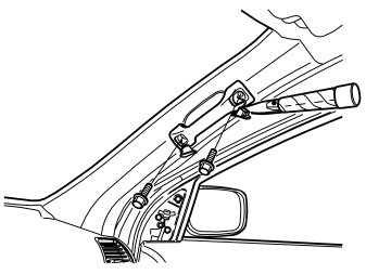 - First insert the bent end in the joint between the loudspeaker grille and the dashboard approximately as illustrated, until it engages.