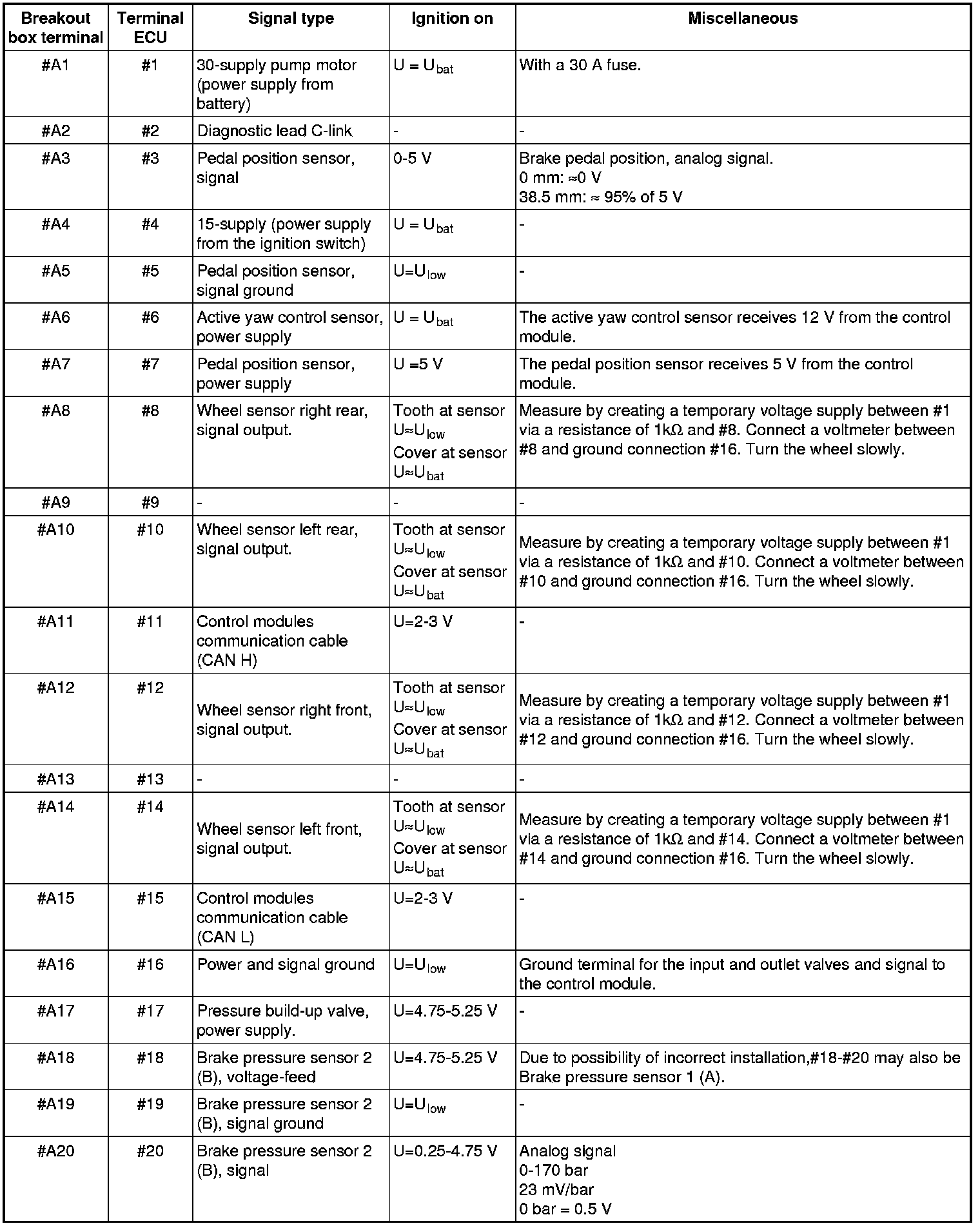 Signal specification, brake control module (BCM) with DSTC (dynamic stability and traction control)