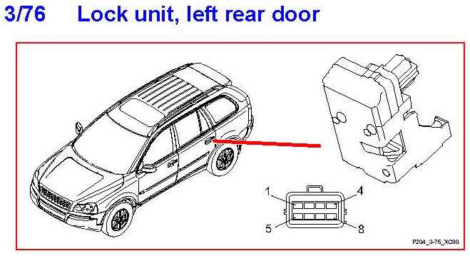 3/76 Lock Unit, Left Rear Door