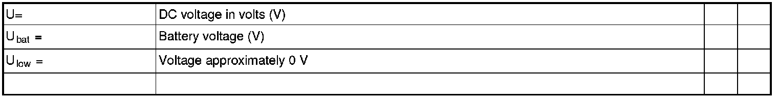 All values given below are between the terminals stated in column 2 and the ground terminal on the body for the control module.