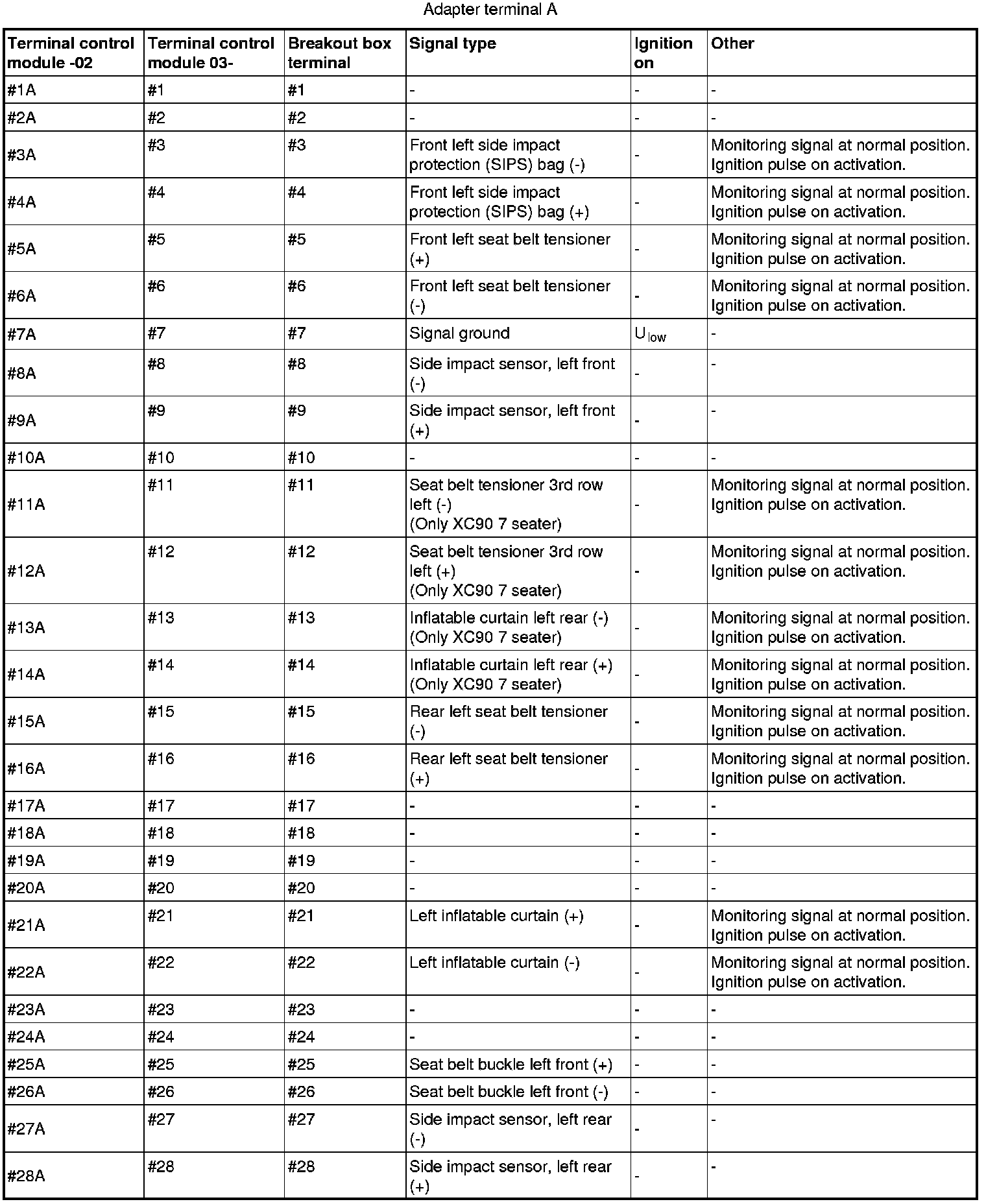 - Terminals #1A-#28A correspond to terminals #1-#28