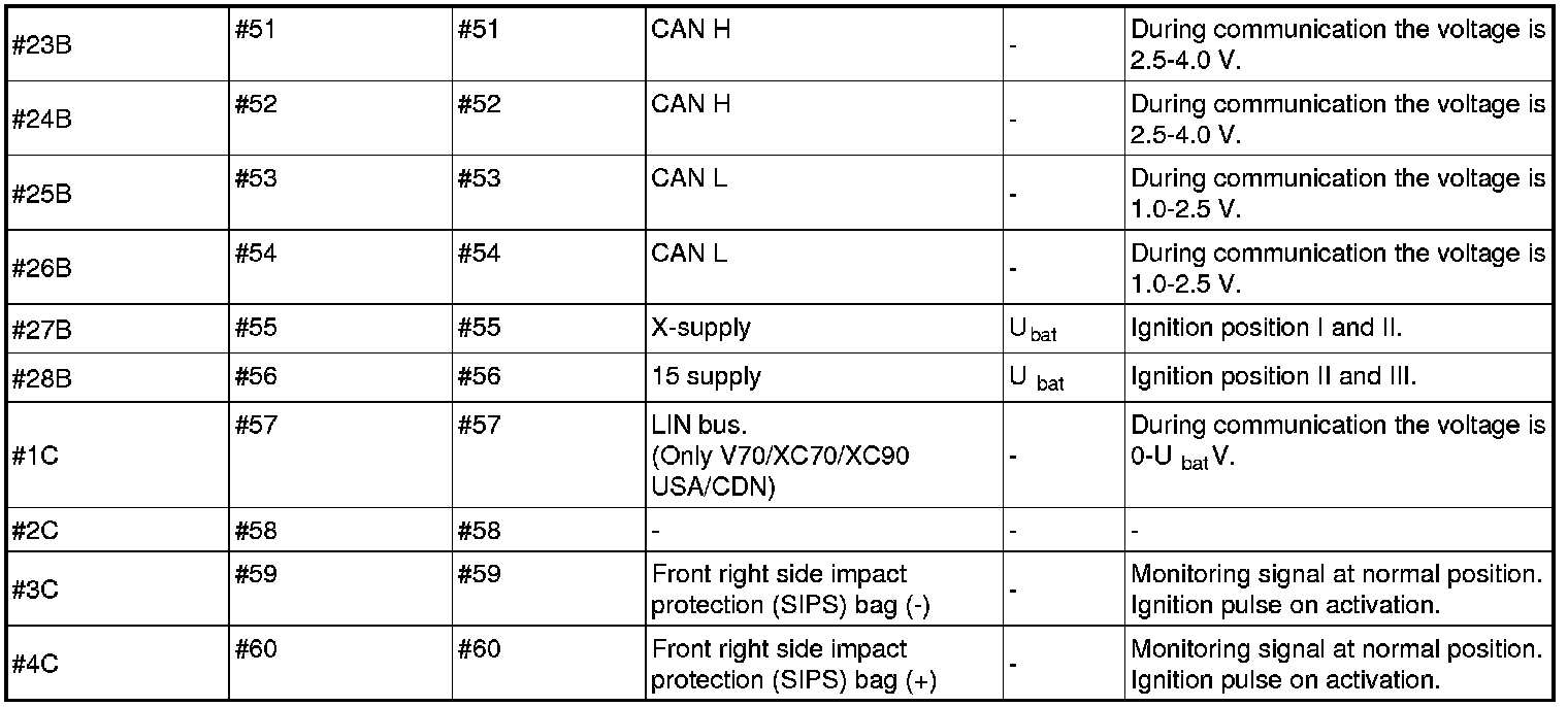 Signal Specification, Supplemental Restraint System Module (SRS)