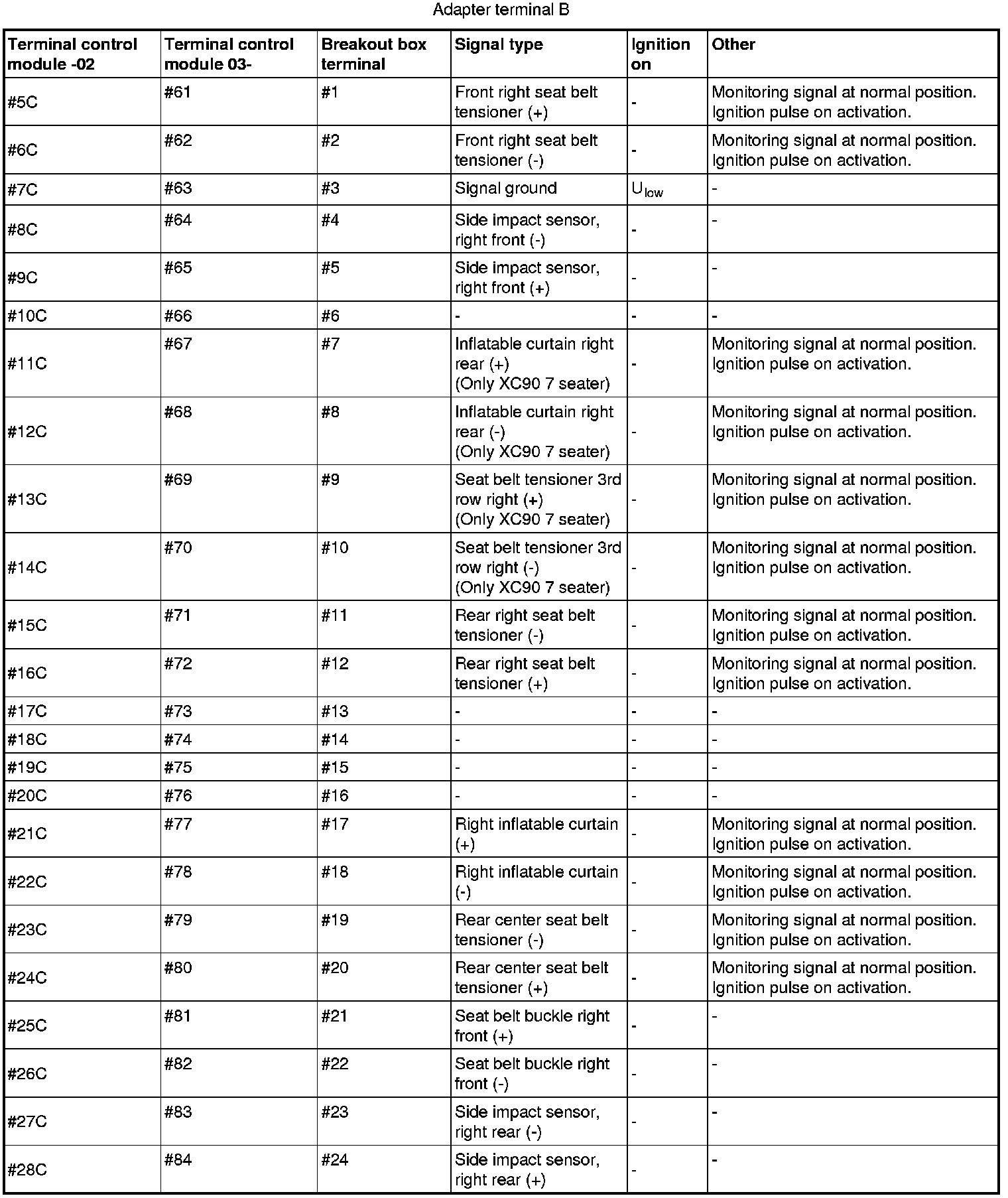 - Terminals #1C-#28C correspond to terminals #57-#84.