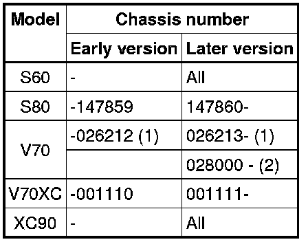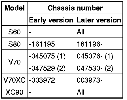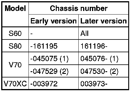 The difference between the early and late versions can be seen from the chassis number in the table below.