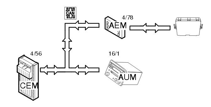 The accessory electronic module (AEM) (4/78) then sends a signal to the audio control module (AUM) (16/1) via the CAN-net.