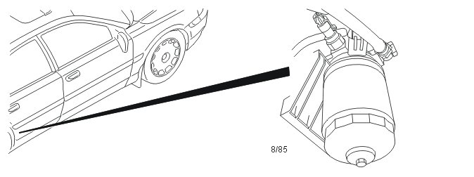 There is a diesel filter on the fuel line from the fuel tank. The rear electronic module (REM) controls warming up of the filter by checking the power supply to the filter via a directly connected relay in the rear electronic module (REM).