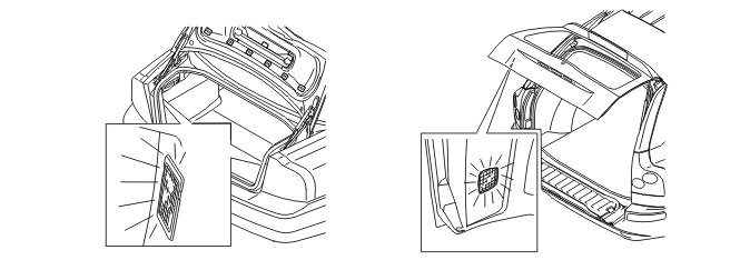 There are lamps in the cargo compartment. There are two lamps in the S60/S80. These are on the left and right-hand sides of the cargo compartment panels. In the XC90 there is a lamp in the trunk lid. The lamps light when the trunk lid is open. The cargo compartment lighting is powered directly from the rear electronic module (REM).