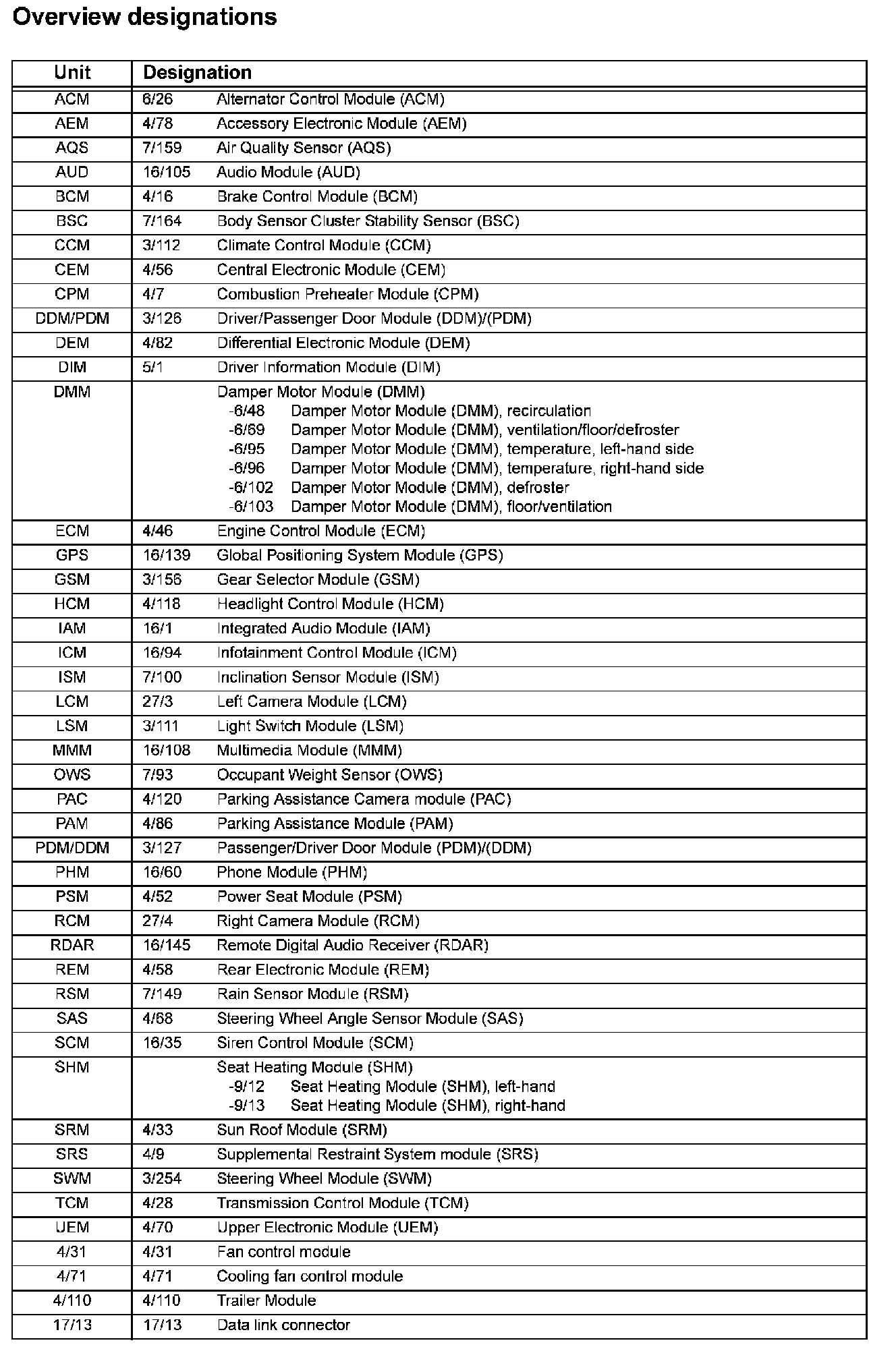 Overview designations