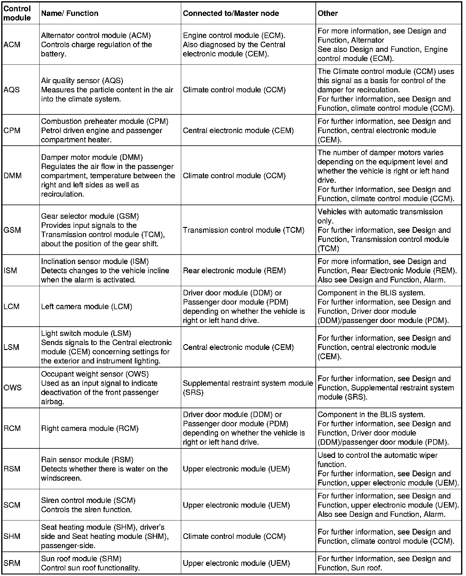 Note! The illustration above and the table below is an example that shows model year 2007. All other information in the document is general and applies to all model years.