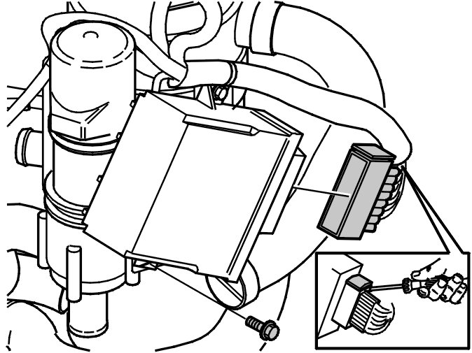 Position a screwdriver between the control module connector and its locking handle (as illustrated). Turn the screwdriver to release the catch.
