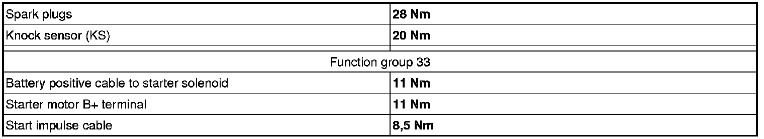 See the table below to find the tightening torques for components not included in the summary.