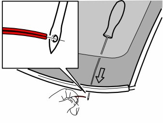 Note! Check that the adhesive bead is firmly against the body, especially in the upper corners.