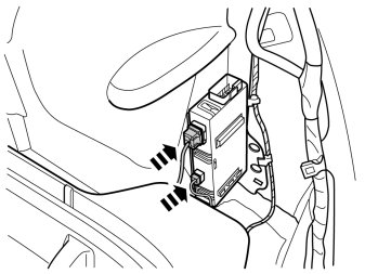 - Find the grey 2-pin and green 5-pin connectors under the corner of the cargo compartment floor support. Lift up the cargo compartment floor support enough to improve accessibility.