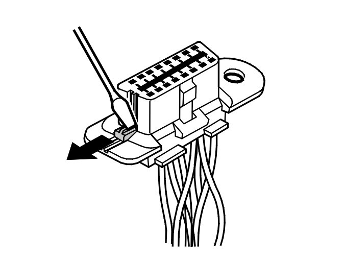 Use tool: 951 2636 Terminal removal tool 951 2636 Terminal Removal Tool to disconnect the cable terminal's lock. See the illustration.