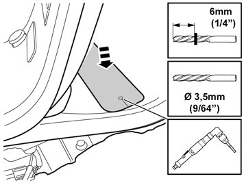 - Disconnect the clips with cable (certain models) and reroute the cable so that it is not in the way of drilling. Check that nothing else obstructs the drilling.